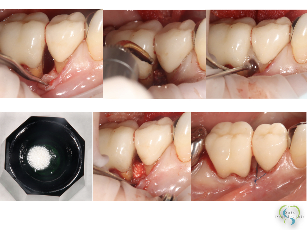 欠損形態が垂直性であったため、補助的にβ-TCP(リン酸三カルシウム)骨補填材を併用しました。